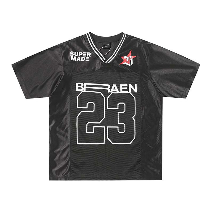 High Street Alphanumeric Printing V-neck Patchwork Short Sleeve