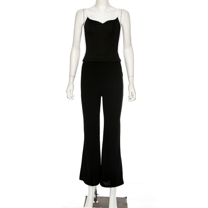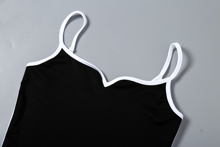 High Street Fans Can Wear Two-piece Sling with Color Matching, Waist and Super Long Legs in All Seasons. Female Trendy
