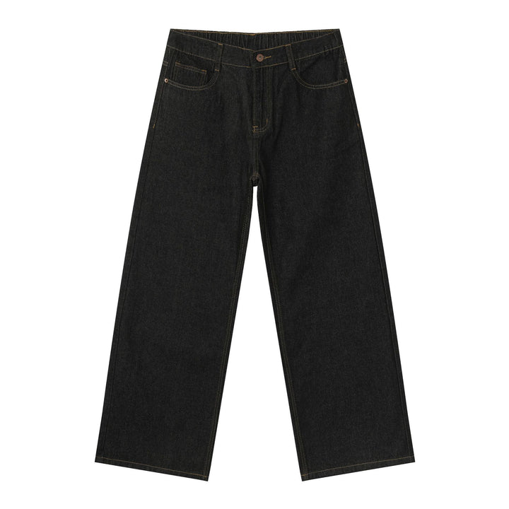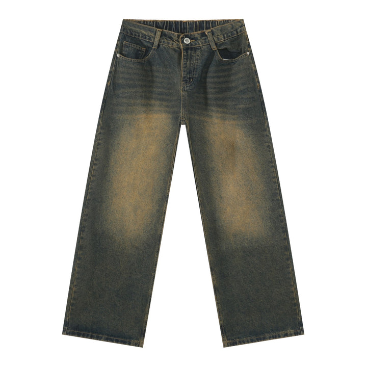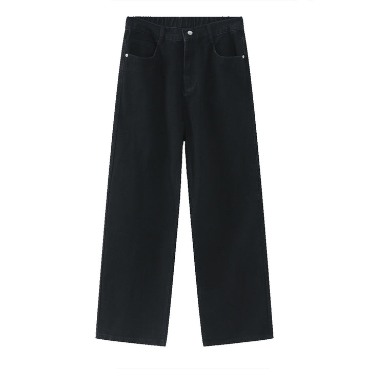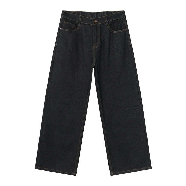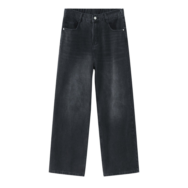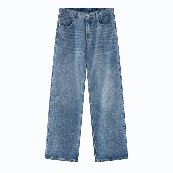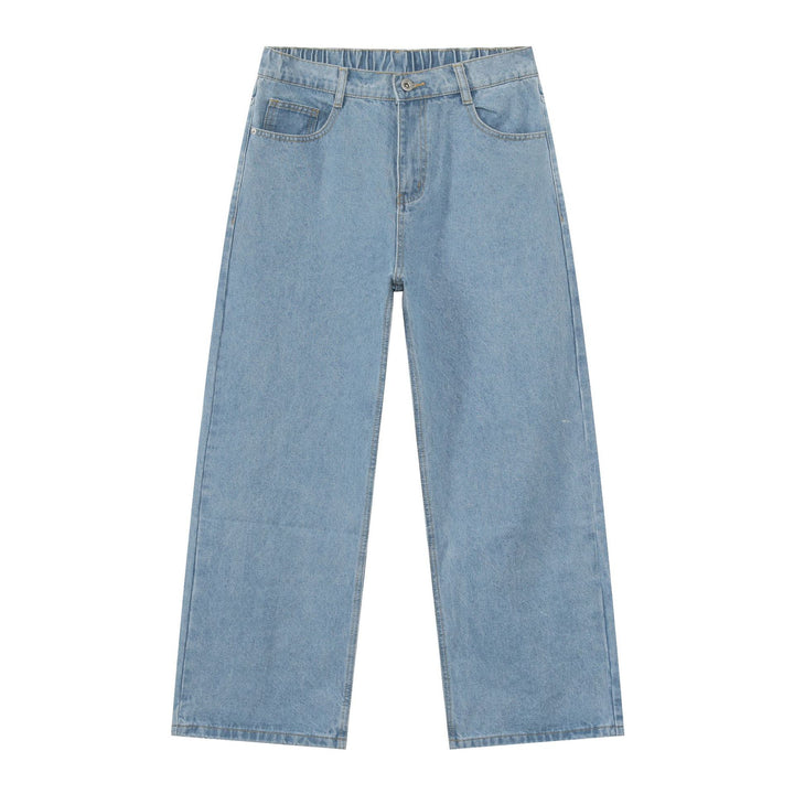 Korean Style Retro Half Elastic Waist Loose Straight Jeans Men's American Style