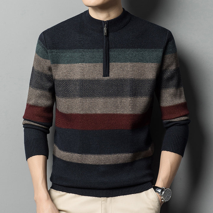 Men's Contrasting Striped Pure Wool Knitted Sweater