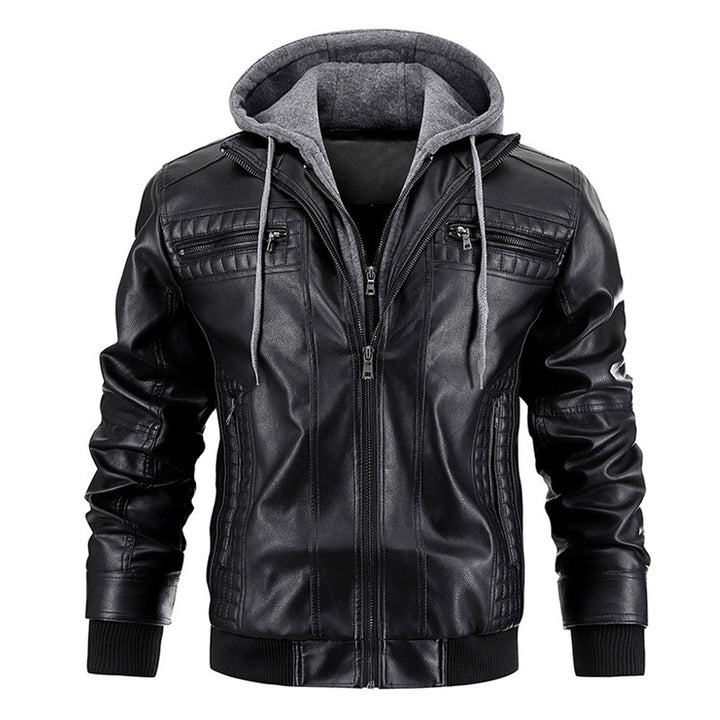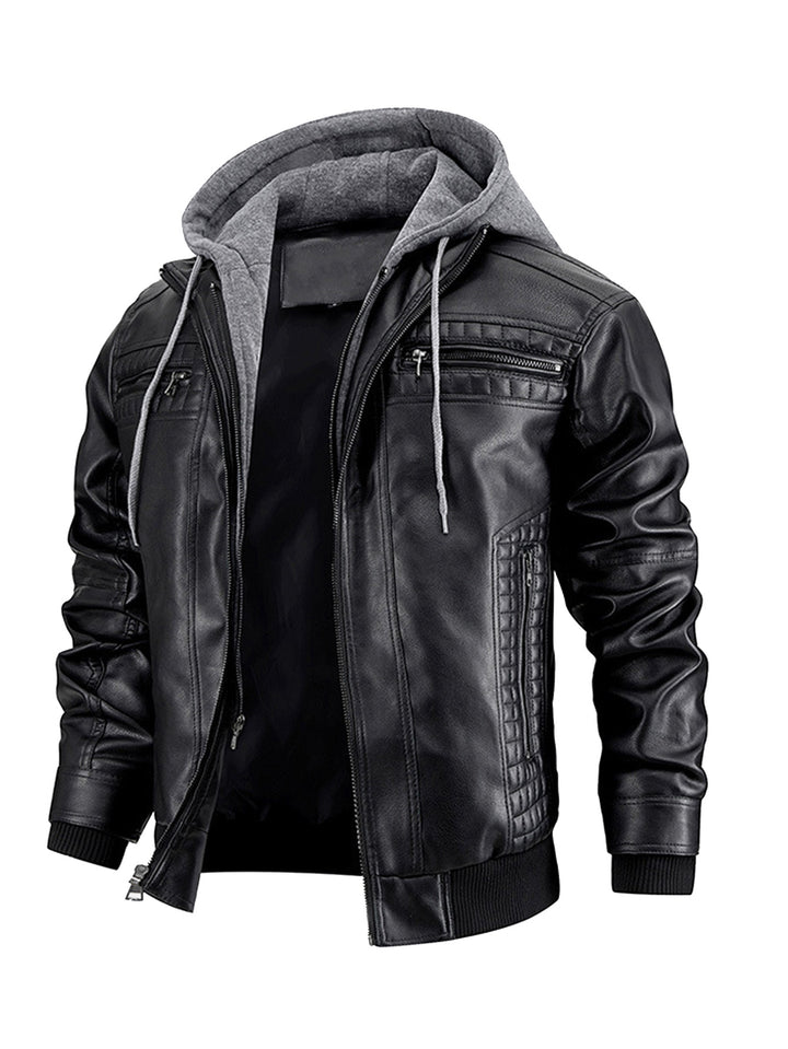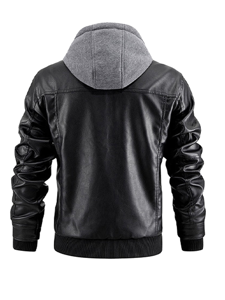 Men's Faux Leather Jacket Motorcycle Jacket Waterproof Windproof PU Moto Vintage Bomber Hoodie With Removable Hood