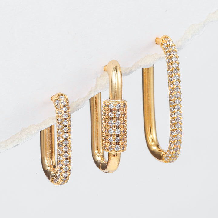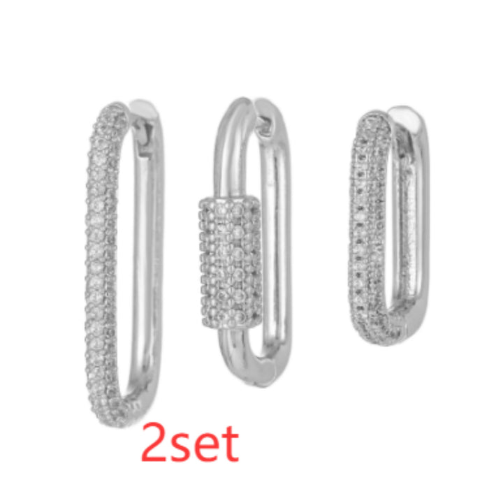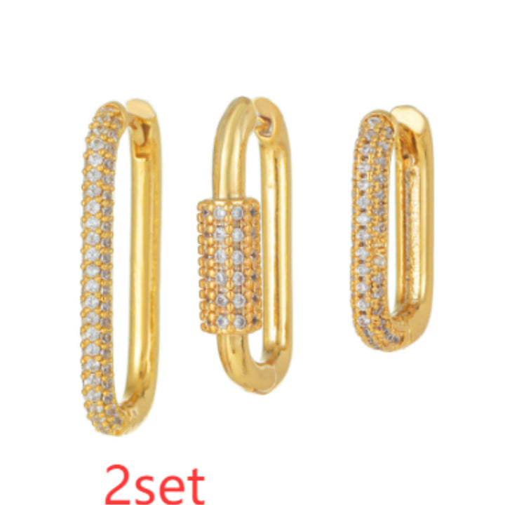 Micro Inlaid Zircon Ear Clip Geometric Three-piece Set