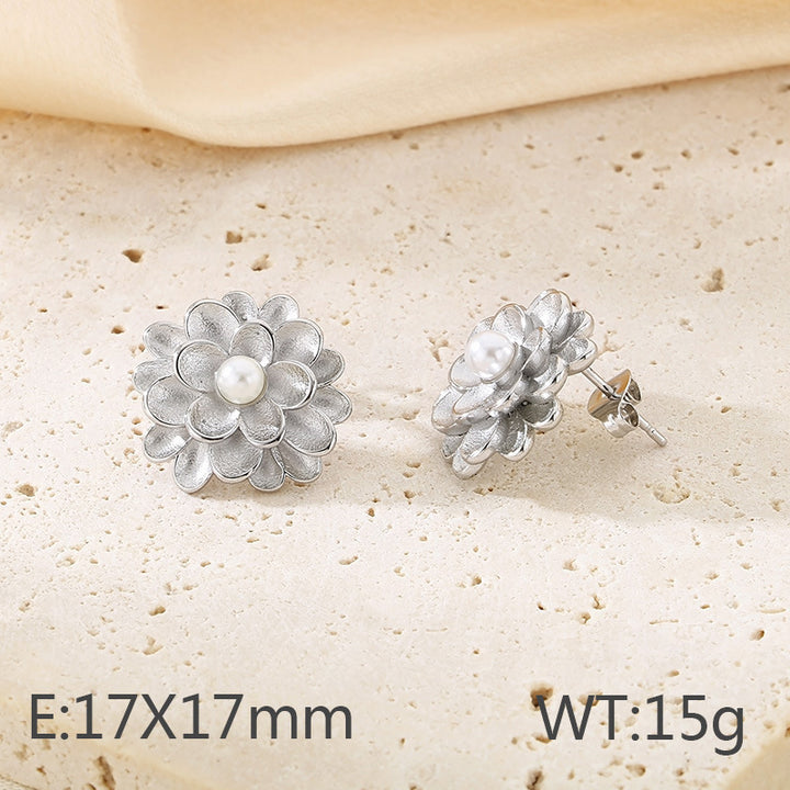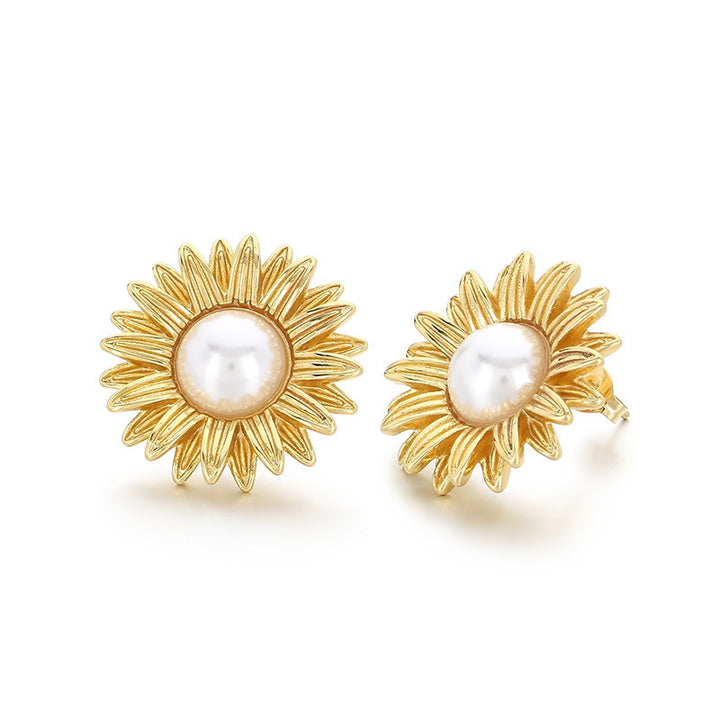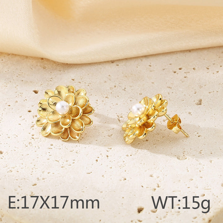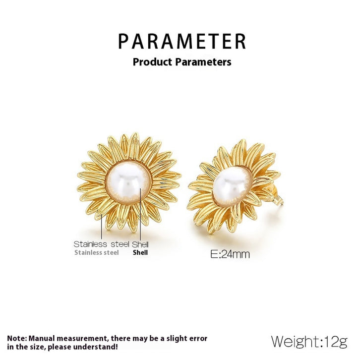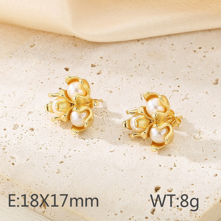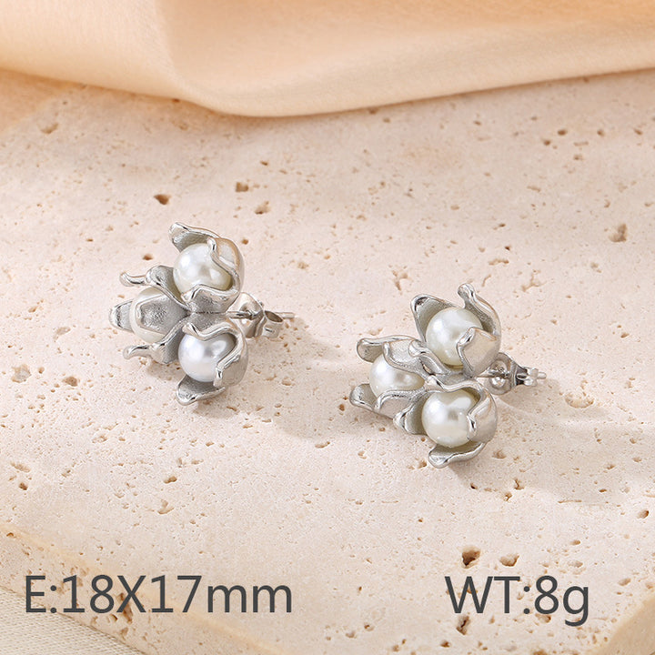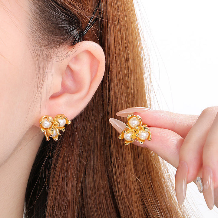More Than Elegance Retro Models With Shell Pearls Petal Stud Earrings French Style High Sense