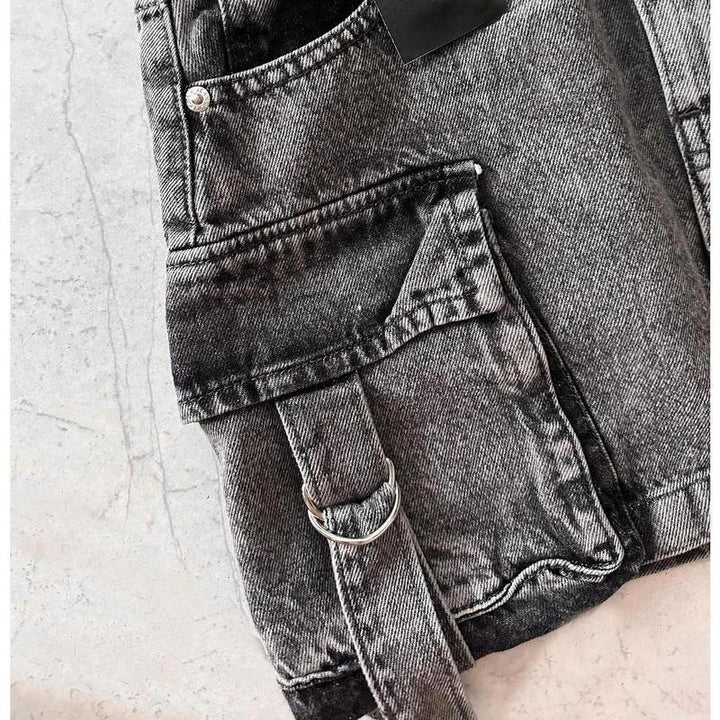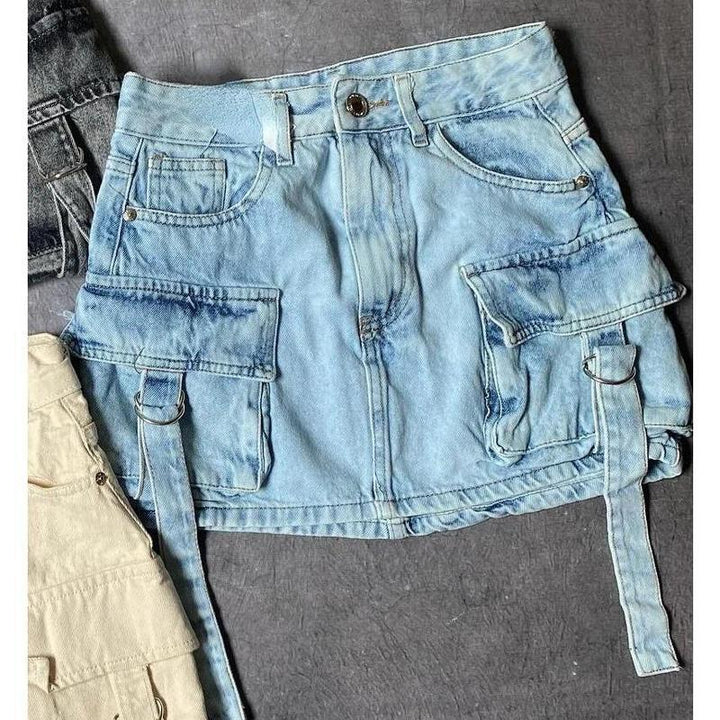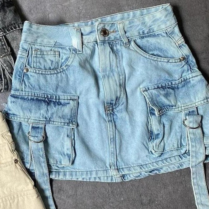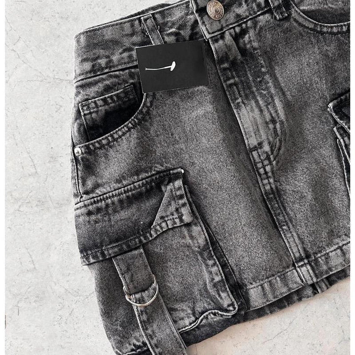 Multiple Pockets Denim Plaid Skirt Vintage Goth Black Y2k