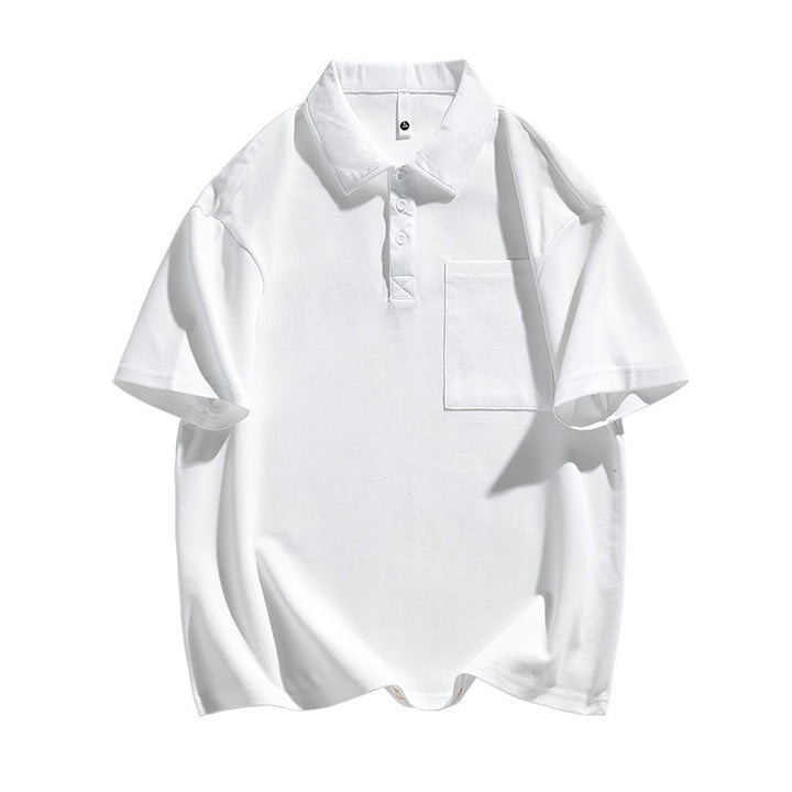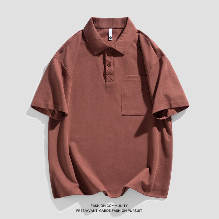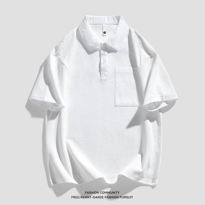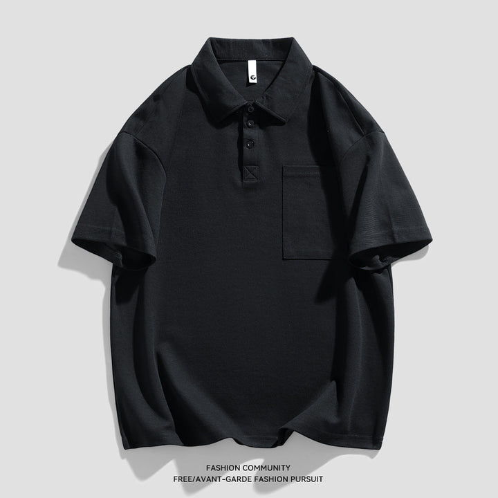 New Heavy Solid Color Pocket Polo Shirt Men's Elbow-sleeved Top Work Clothes