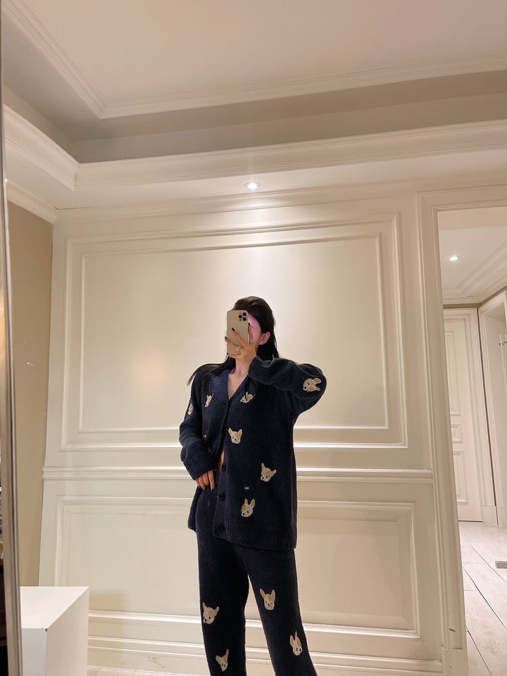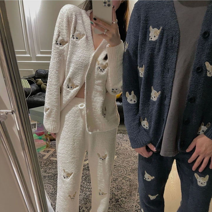Puppy Embroidered Autumn And Winter Soft Pajamas Sets Women