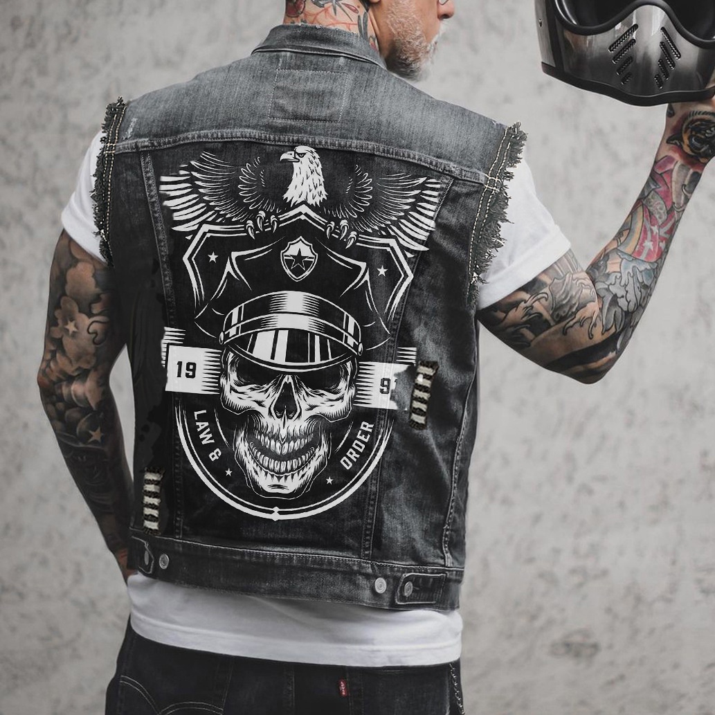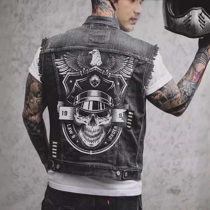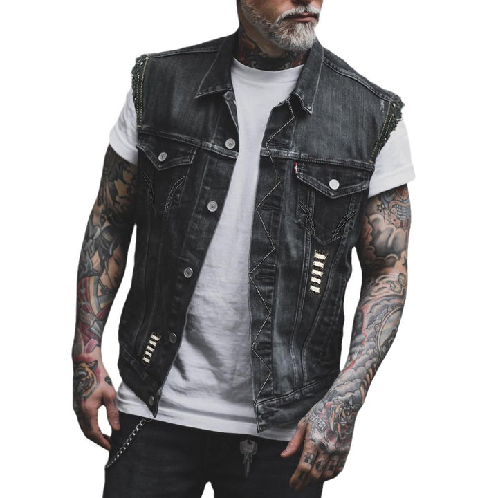 Street Denim Vest Multi-bag Distressed Sleeveless Jacket