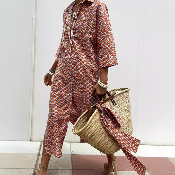 Striped Shirt Dress With Belt Fashion Half-sleeved Lapel Button Cardigan Dresses Women's Clothing