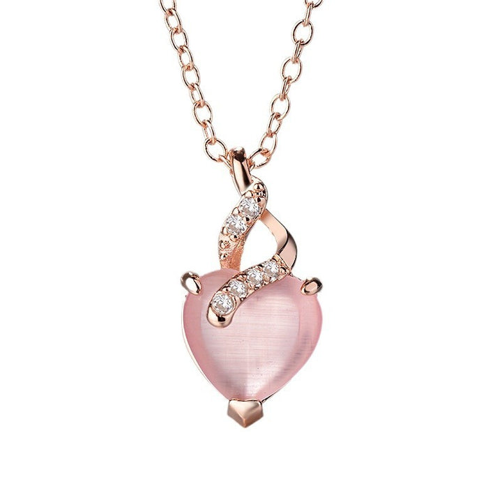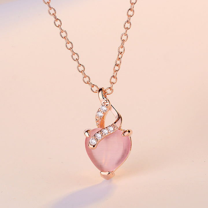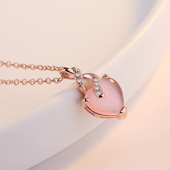 Women's Heart-shaped Pink Crystal Synthetic Pendant Necklace