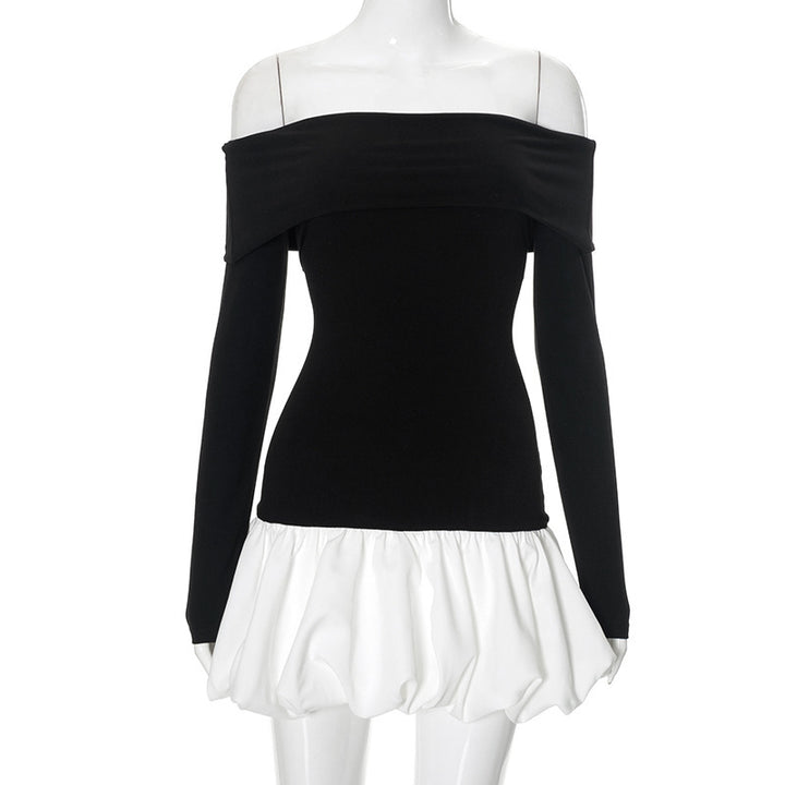 Women's Off-shoulder Long Sleeve Stitching Dress